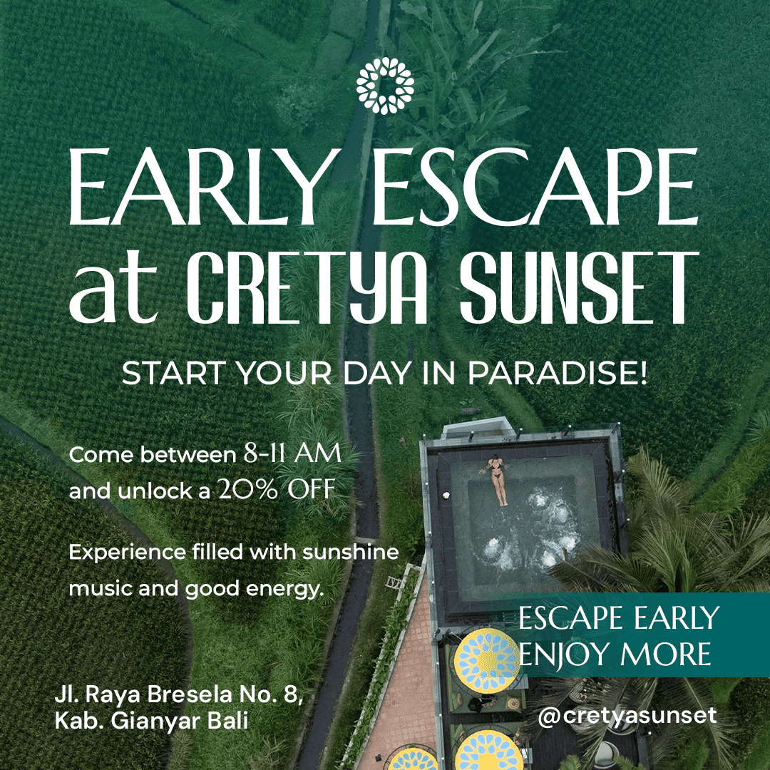 Cretya Sunset is available for private events, including full venue buyouts. Please contact the reservations team to discuss your event requirements, availability, and pricing. Please contact our reservation to secure your spot via WhatsApp +62 853-3723-0775 , or email at [email protected]
